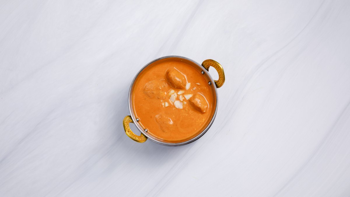 Marinerade, strimlade filébitar av tandoorikyckling i en krämig tomatsås med indiskt smör och cashewnötter.