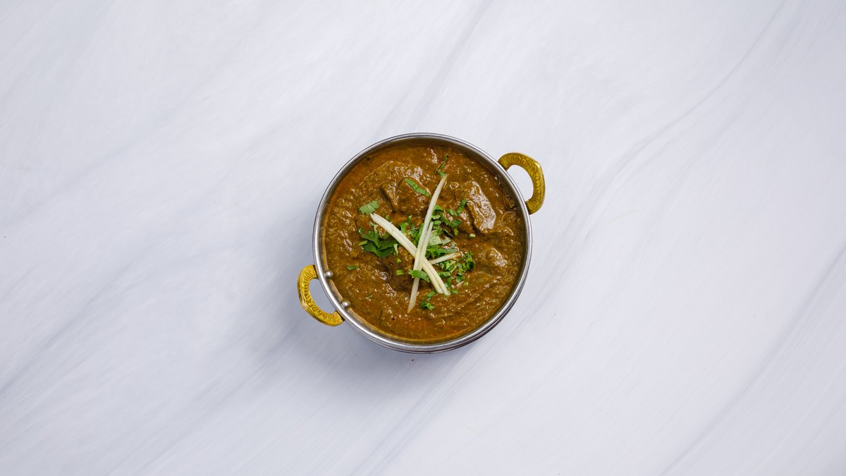 Lammgryta med lök, ingefära, koriander och grön chili.