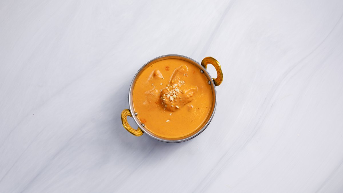 Kycklingfilé tillagad med lök, vitlök, ingefära, tomat, indiska kryddor, grädde och kokosmjölk.