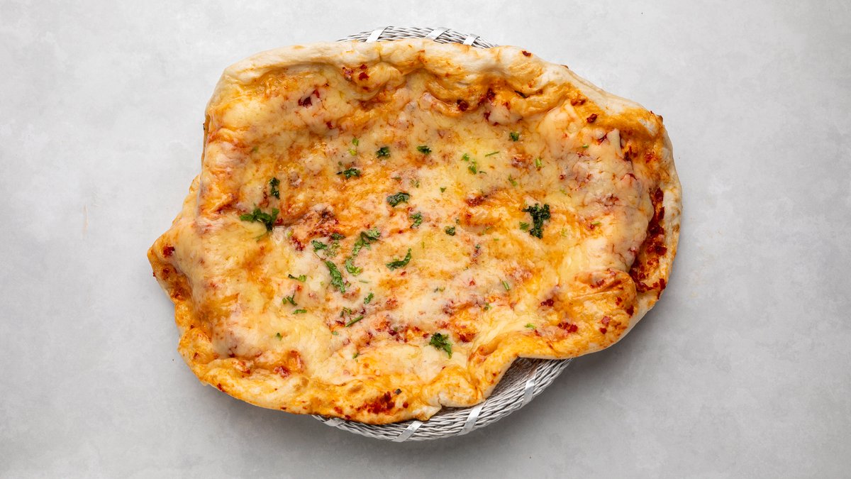 Ugnsbakat plattbröd fylld med öst och chilli.