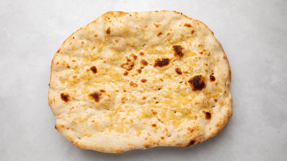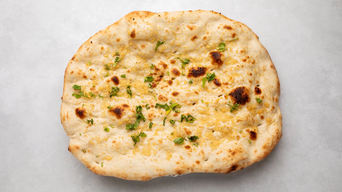 Ugnsbakat plattbröd toppad med vitlök och koriander.