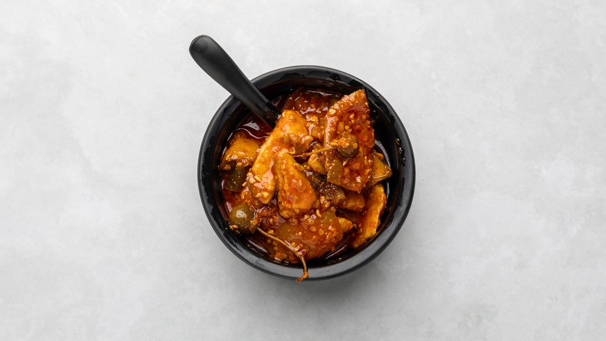 Blandad av mango, morot, grön chili, citron och sojabönolja med indiska kryddor.