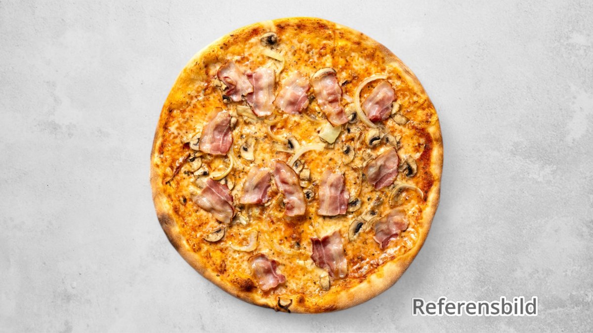 Kyckling, bacon, champinjoner och BBQ-sås.