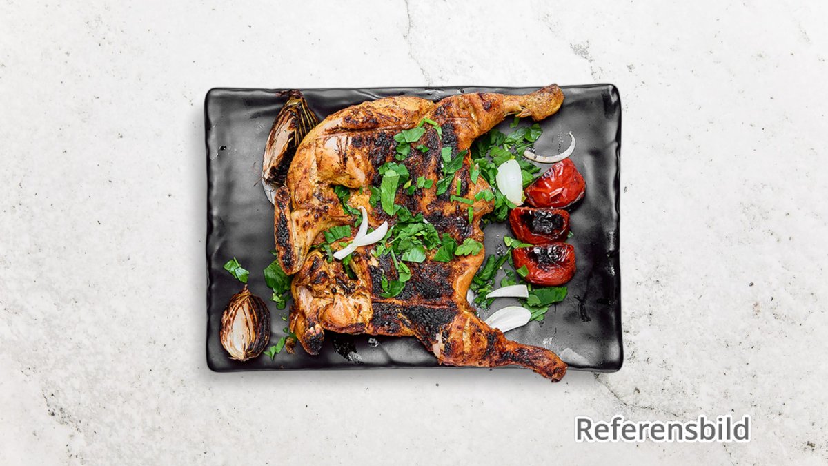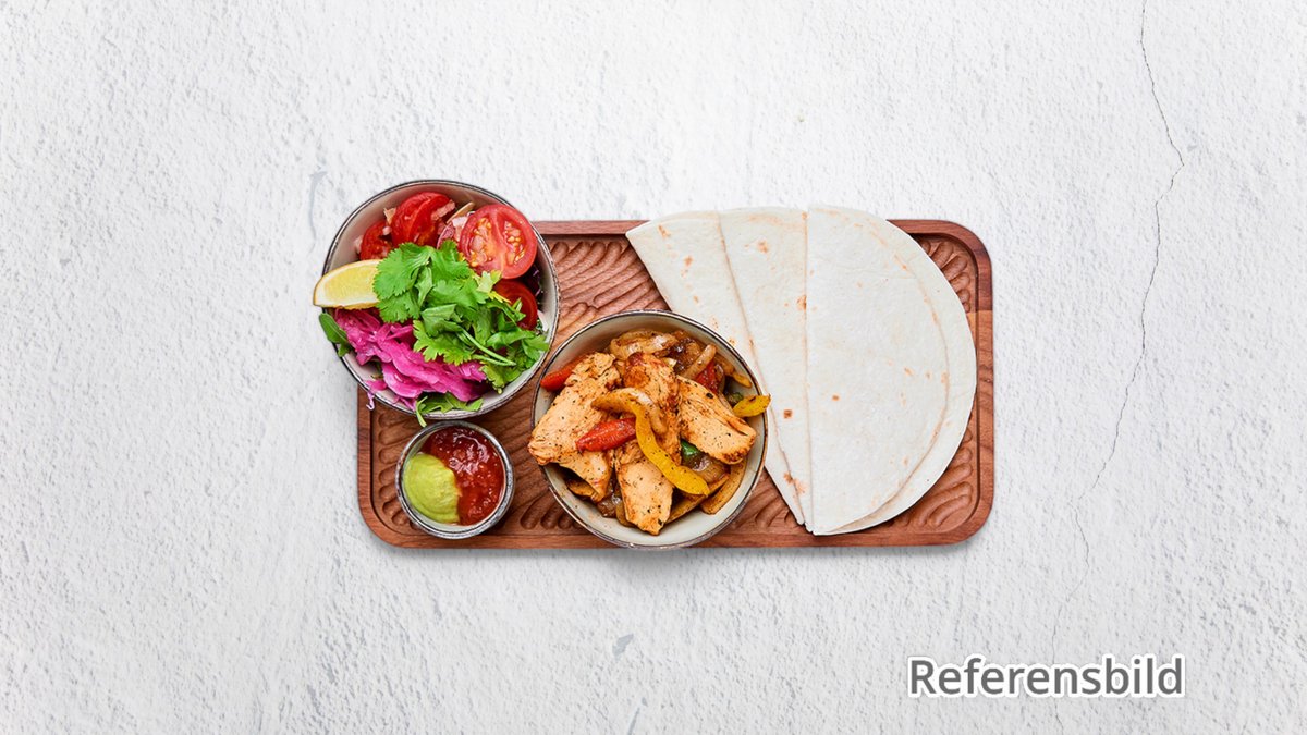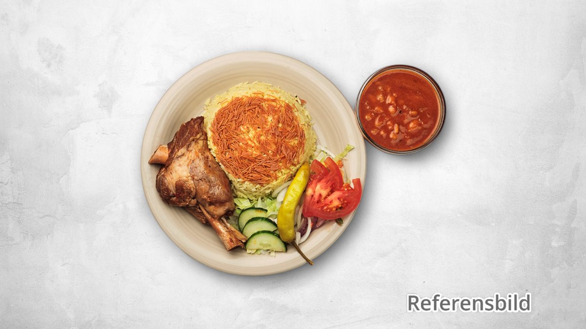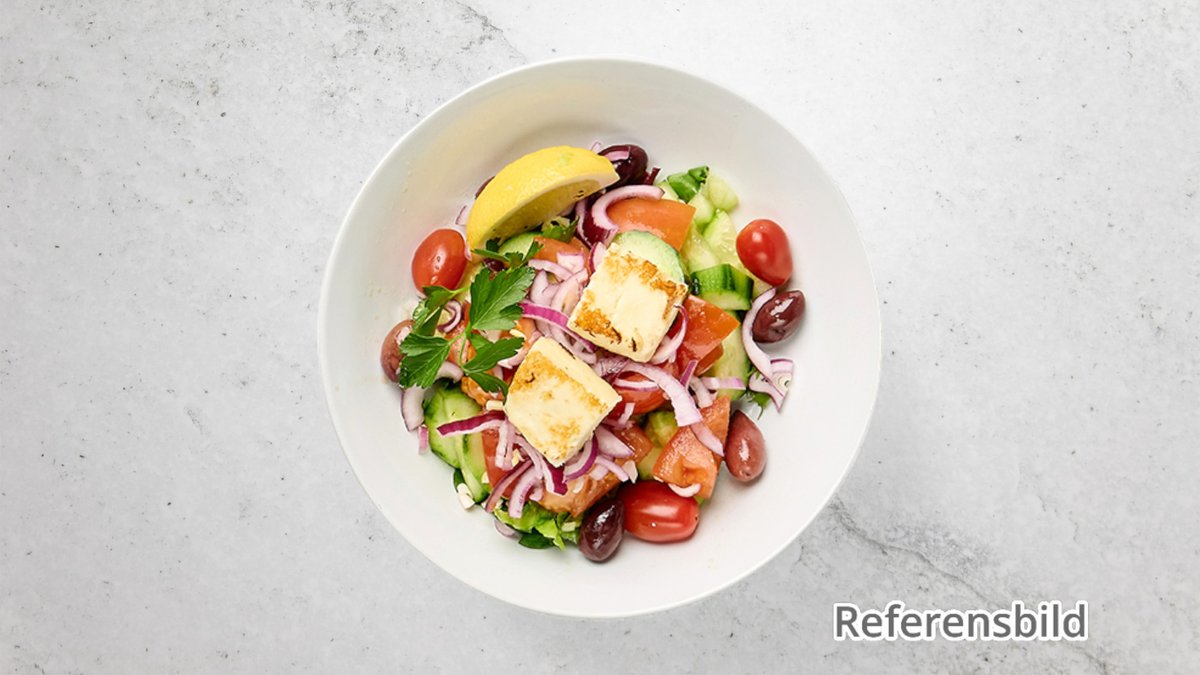 Citron, grönsaker och valfri sås. Välj tillbehör i nästa steg.