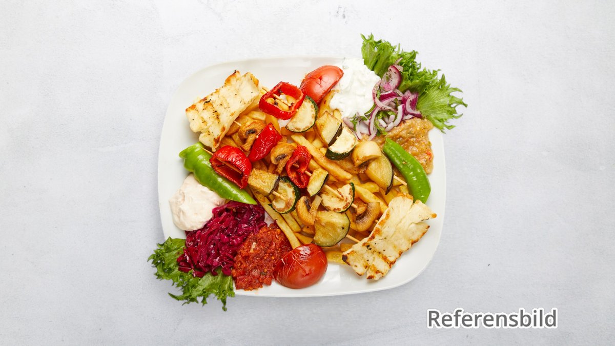 Fläskfilé, köttfärs, lök, tomater, räkor, paprika och bearnaisesås.
