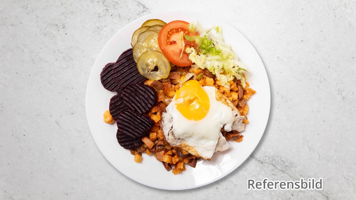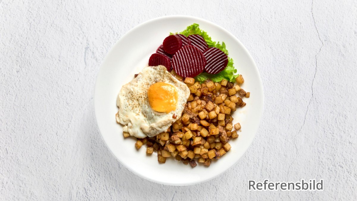 Serveras med rödbetor och stekt ägg.