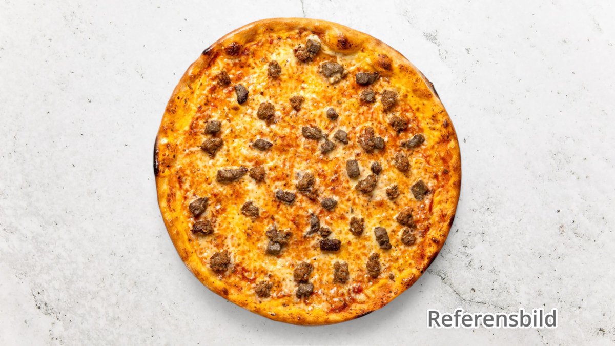Tomatsås, ost, oxfilé, champinjoner, jalapeño, lök, vitlök, tacosås, tacokrydda och mild sås.
