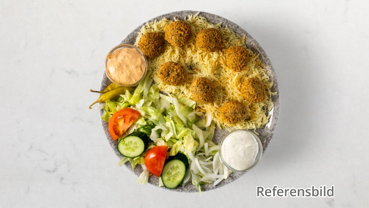 Tallrik med falafel och ris.