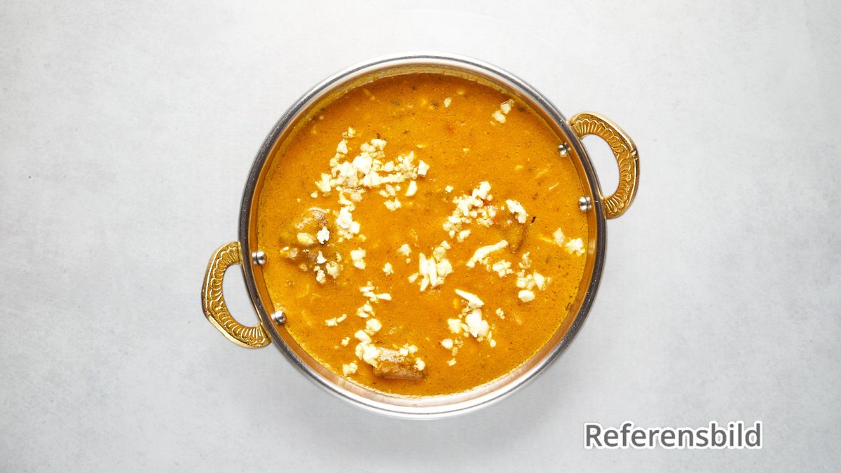 Grillad paneer bitar kokta i gräddsås och indisk mild kryddor.