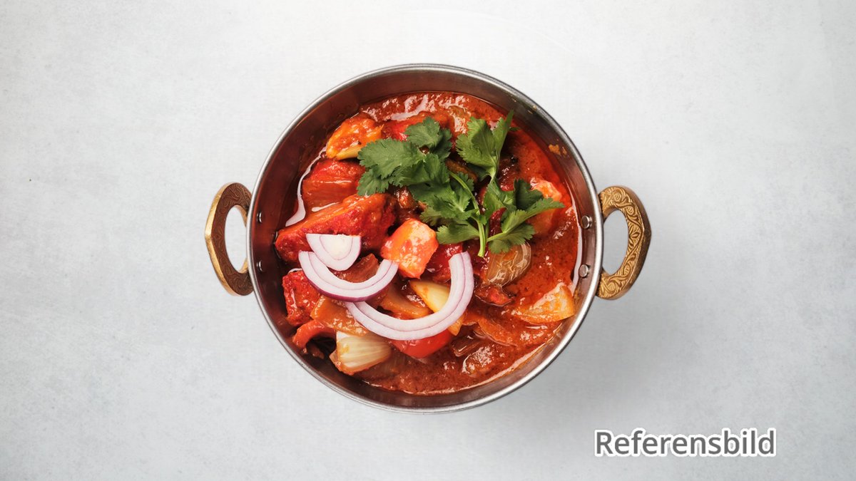 Lamm tillagade i tomat och löksås med speciella balti kryddor.