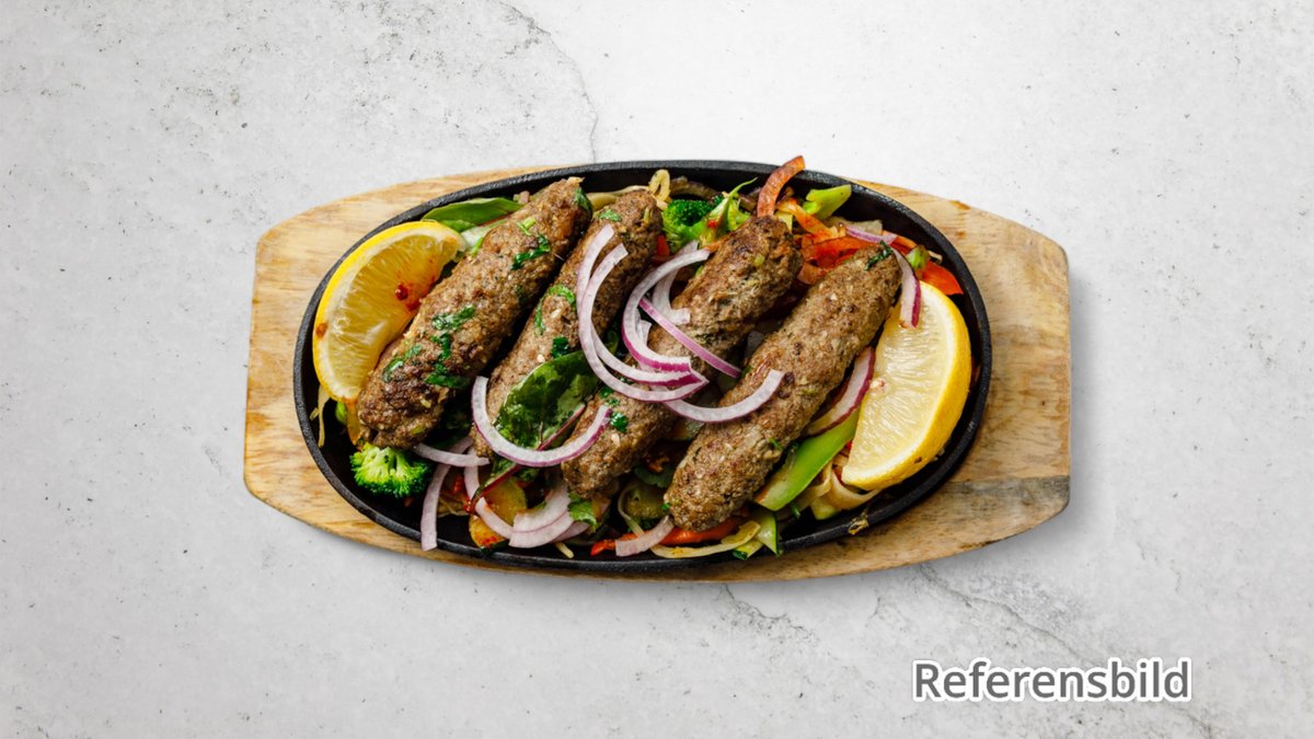 Lammfärskebab tillagade i lök och tomater med våra speciella kryddor.