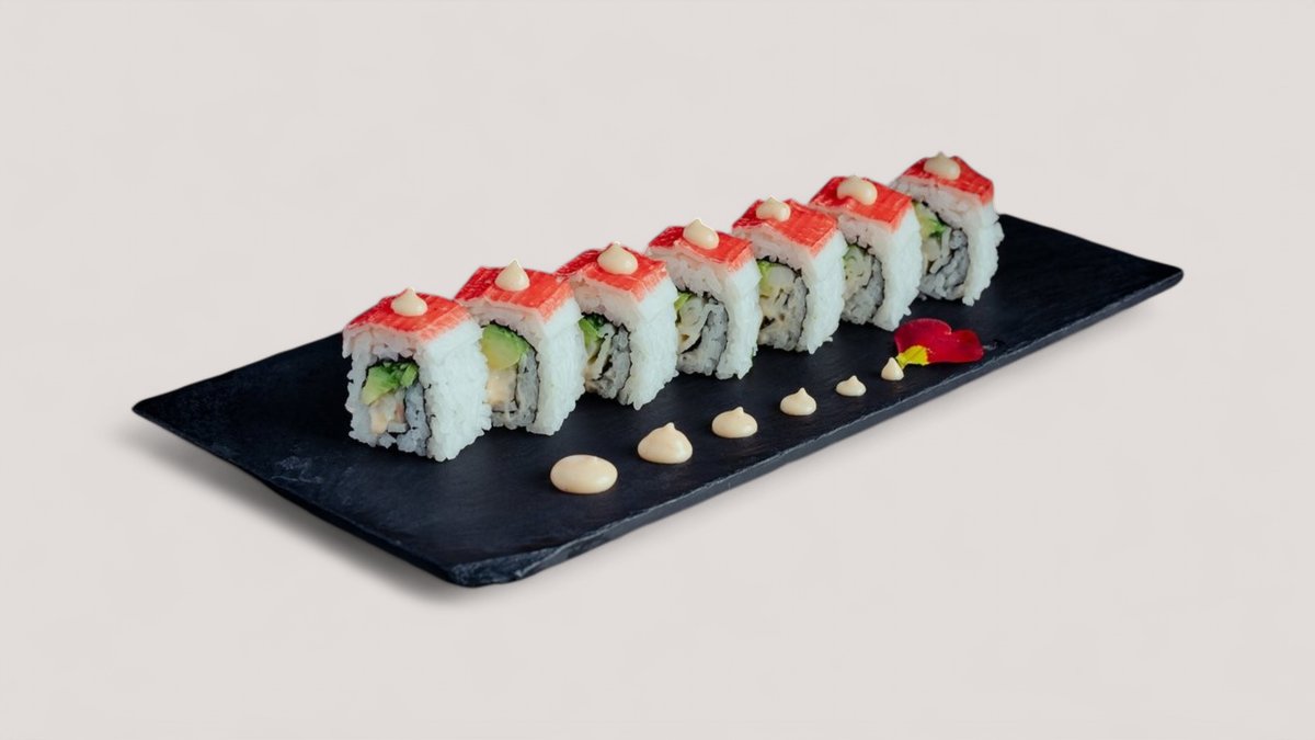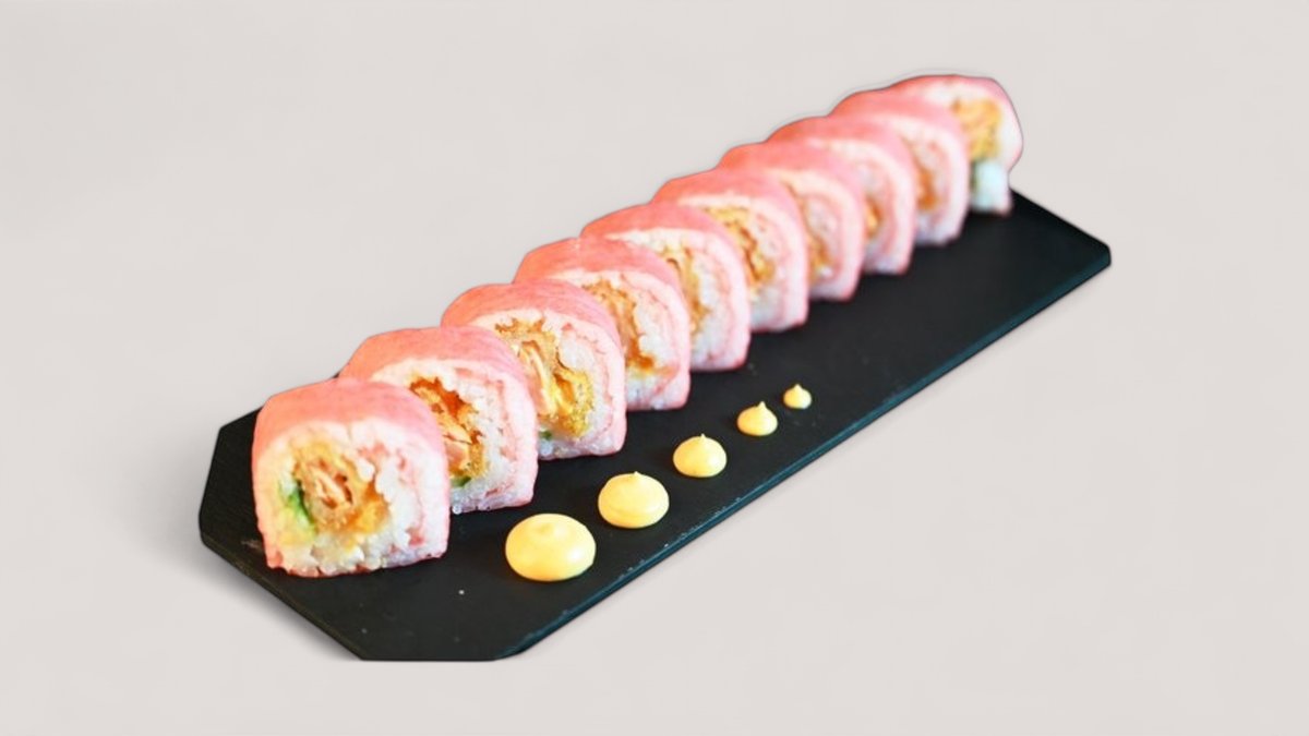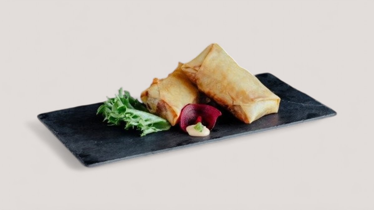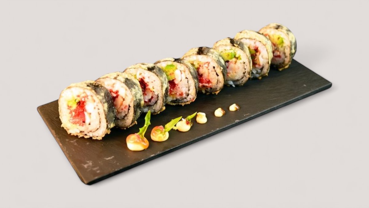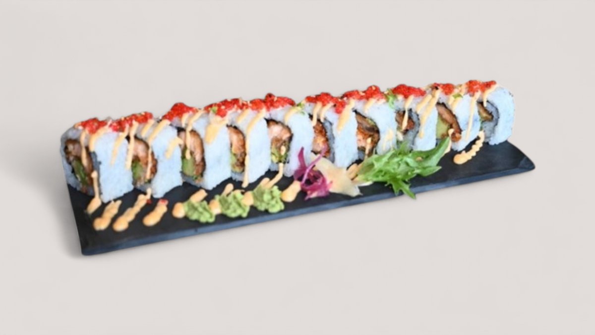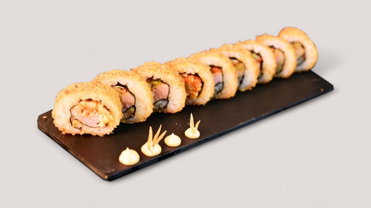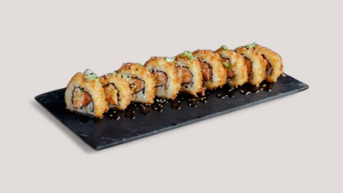 En friterad rulle med innehåll av teriyaki kyckling och philadelphia ost. Toppas med chili majo, teriyaki sås, sesamfrön och salladslök.