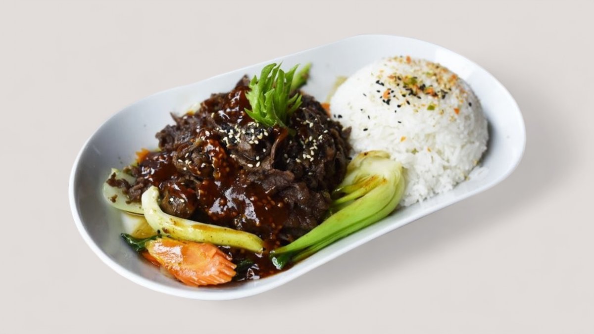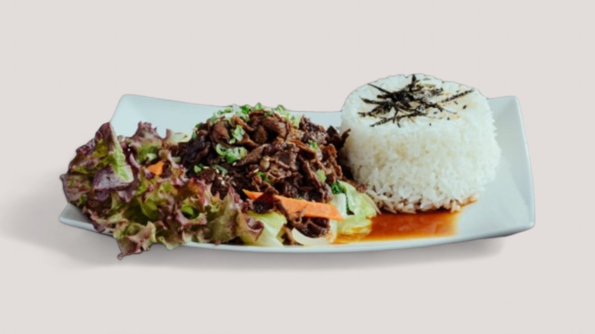 160gr nöttkött, wokade grönsaker med Yakiniku sås. Serveras med ris.