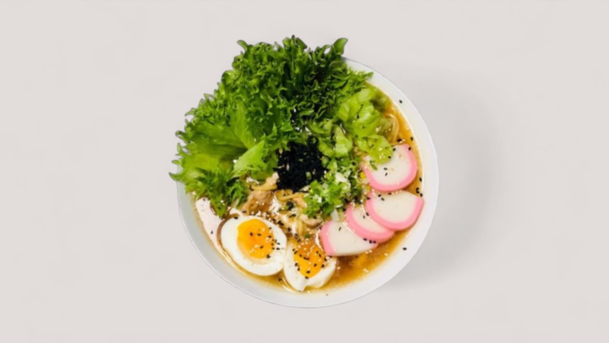 Lät hemlagad fläsk ramen med en smakrik buljong, grönsaker och kokt ägg. Allergi: sesam, ägg och soya.