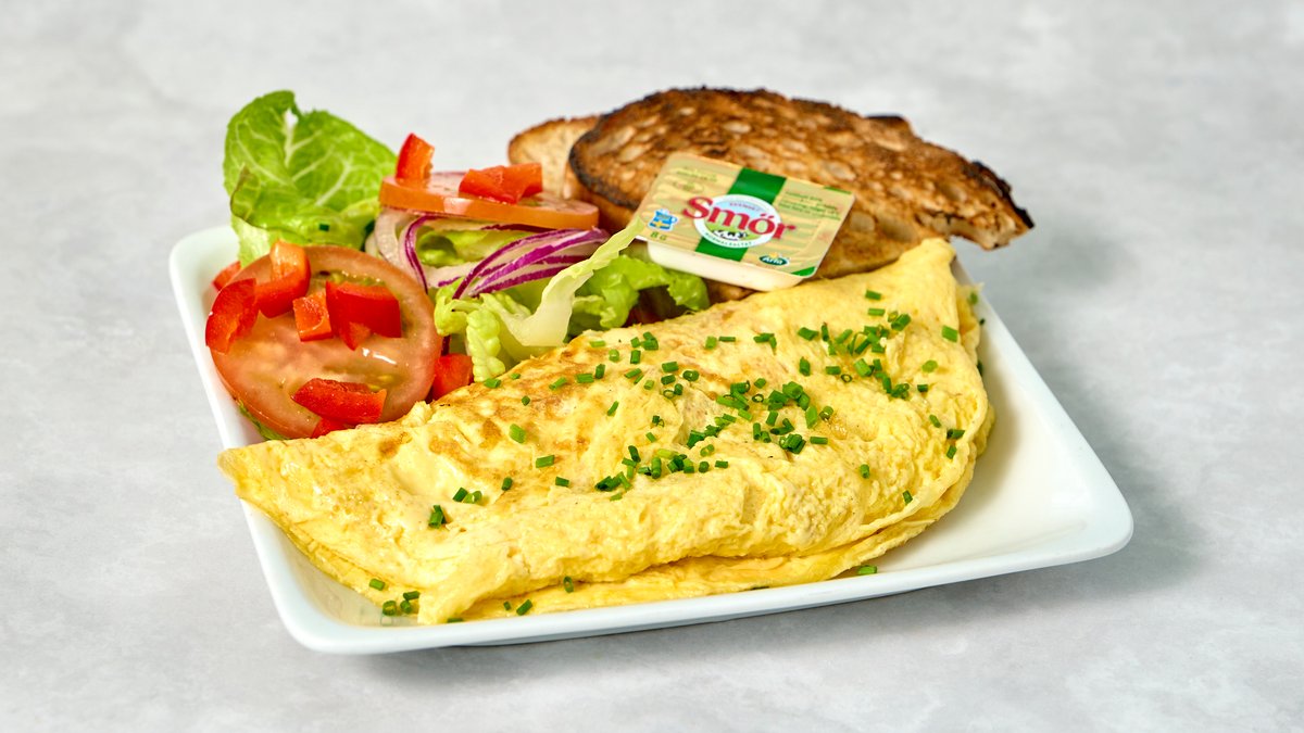 Välj mellan pannkakor, stekt ägg med bacon, äggröra, omelett eller frittata, och få en nygräddad bagel av valfri sort med färskost och sylt, tillsammans med antingen yoghurt med granola, overnight oats med äppelmos eller fruktsallad, samt kaffe eller te.