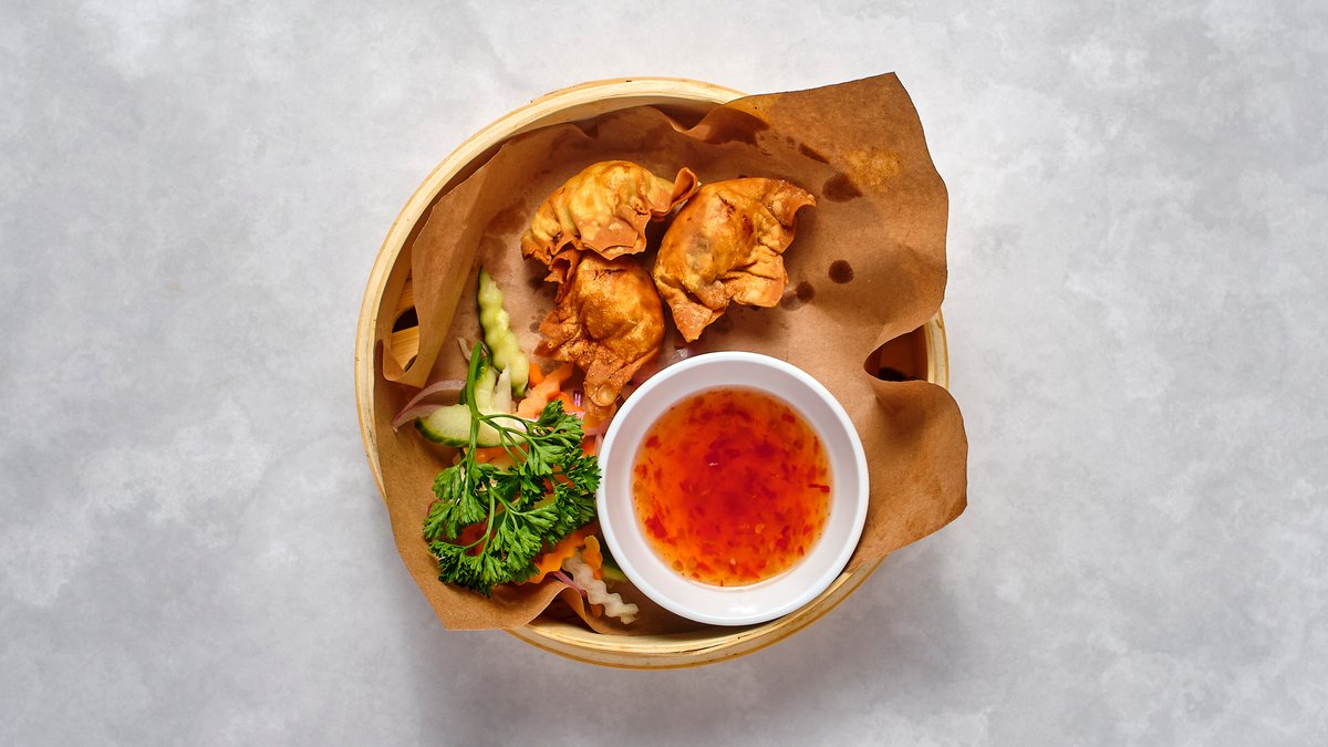 3 st. Friterad Wonton (kycklingfilé, räkor) och sweetchili-sås.