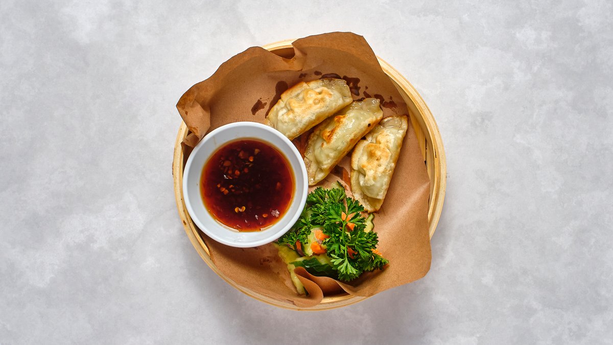 Stekta dumplings med dippsås.