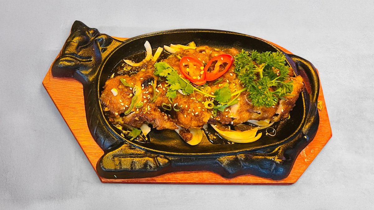 Friterad crunchy kyckling, pommes och chilidipp.