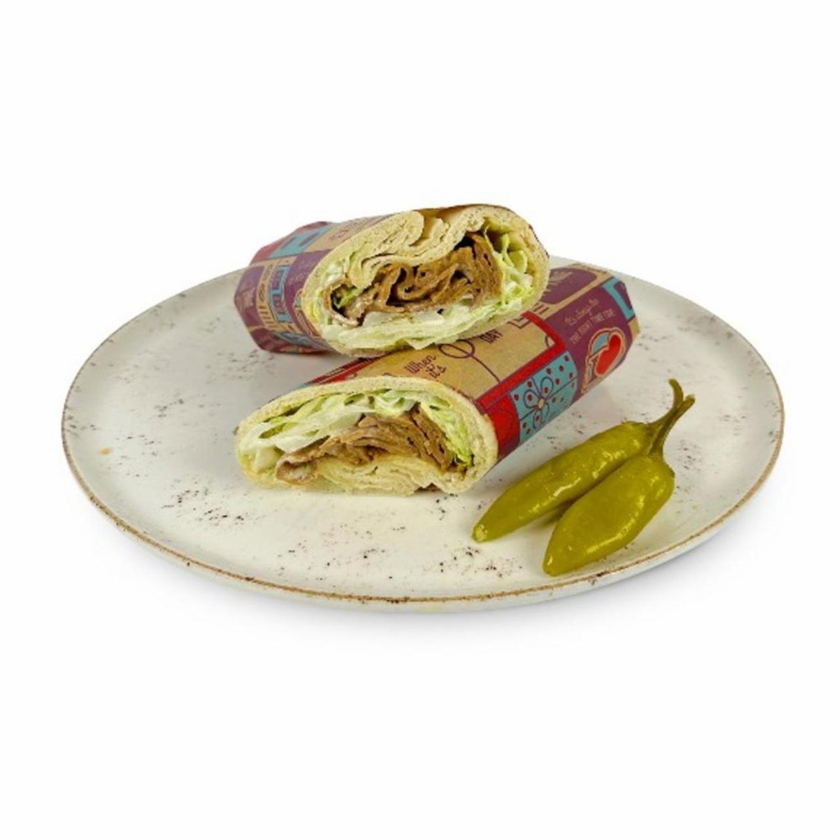 Pitabröd, isbergssallad, gurka, lök, nötkött, feferoni + valfri dressing ingår