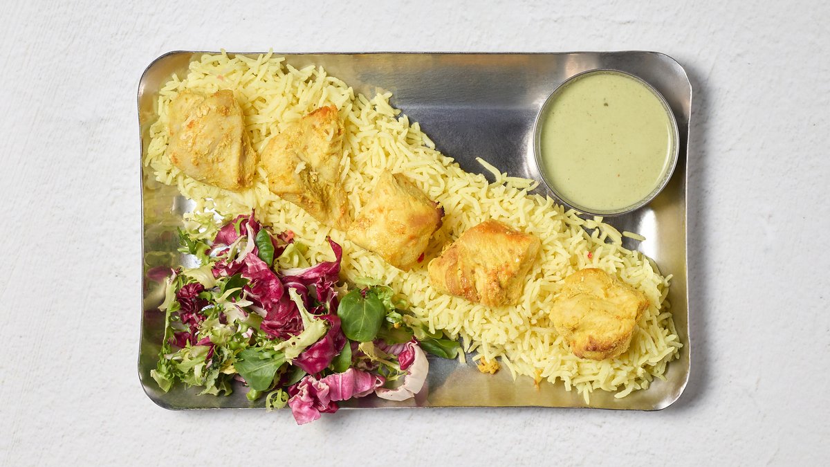 Yoghurtmarinerad kycklingfilé med vitlök, lime och tandoori masala.