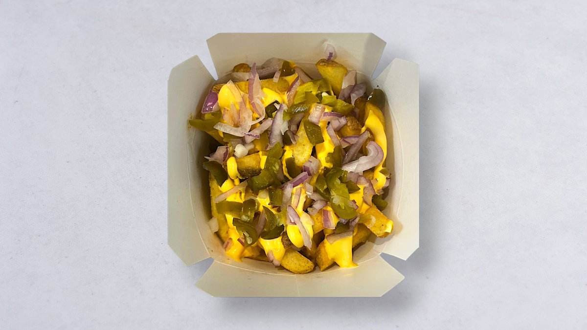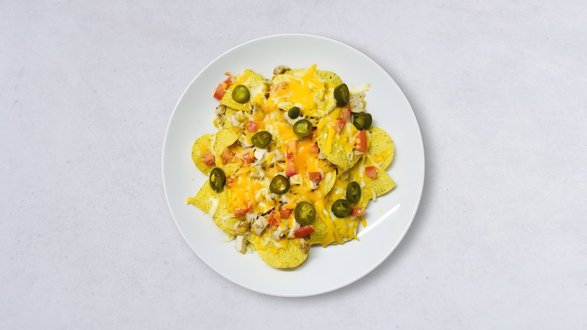 Kyckling, cheddarost, edamerost, tomat, lök, majs och valfri sås.