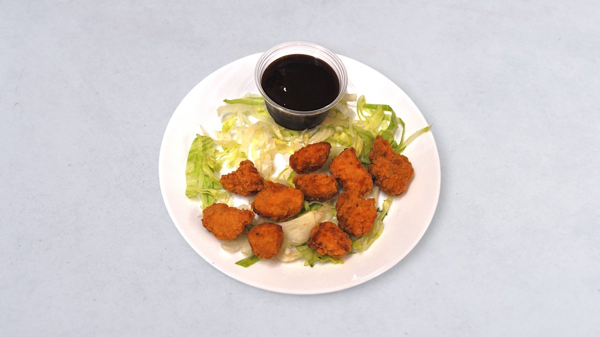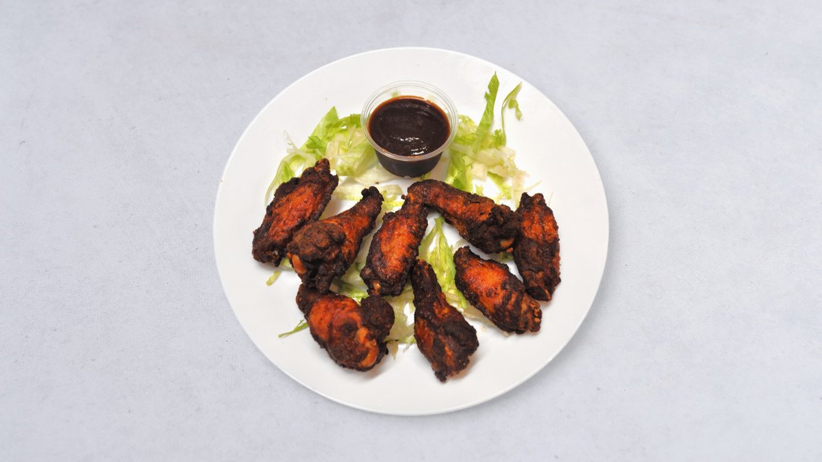 6 st buffalo wings, 6 st onion rings, 6 st chili cheese, 3 st chicken tendar, 12 st chicken popcorn och två sås.