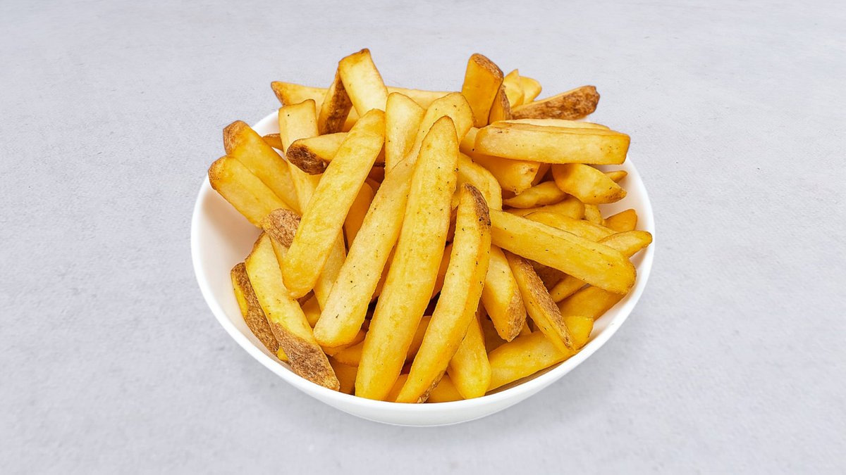 Fritterad kyckling med sallad, tomat och majonnäs rullat i tortilla. Pommes ingår.