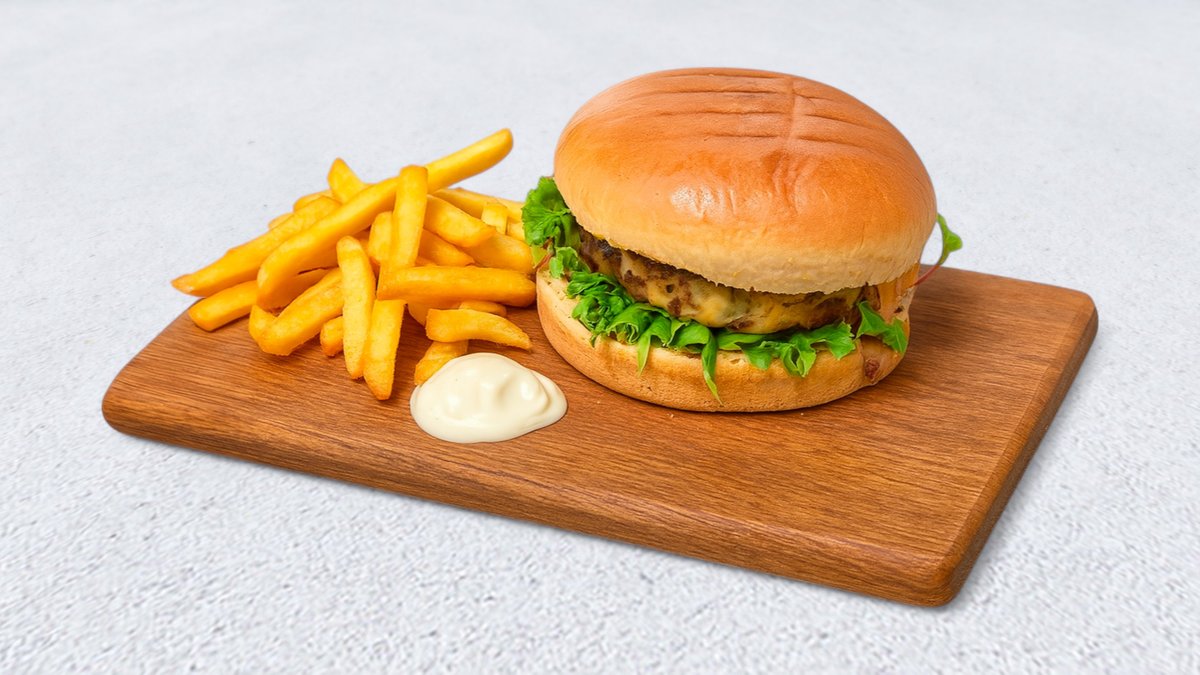 Serveras med 200 g högrev..
