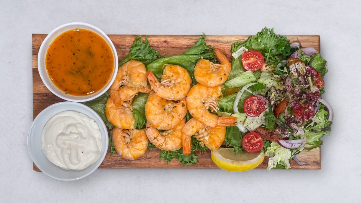 Serveras med sallad, kokt potatis, aioli och citron.
