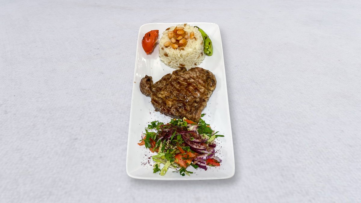 Serveras med 4 st olika sorters kött, råstekt potatis, sallad grillad tomat, paprika, stekta grönsaker och 3 st olika såser.