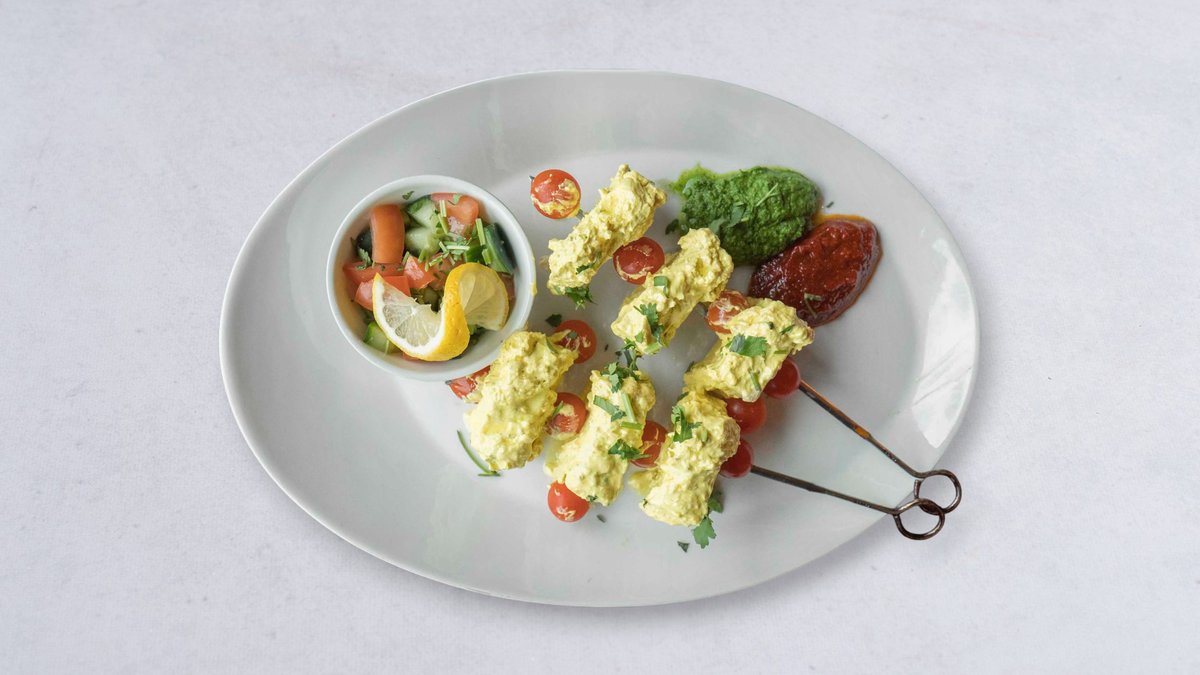 🌶️🌶️ Marinerad lammfärskebab, indisk färskost, kyckling marinerad i vitlök och örter, kyckling marinerad i tandoorimasala och räkor marinerad i gröna örter.