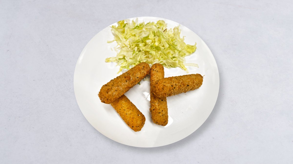 Serveras med 4 buffalo wings, 4 onion rings, 4 chili cheese, 2 st kyckling tender, 8 st kyckling popcorn och två st såser.