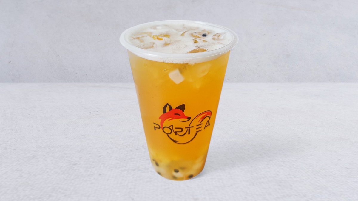 Grönt jasmin-te, ananas, passionsfrukt, citron, apelsin, kokosnöt och jelly.
