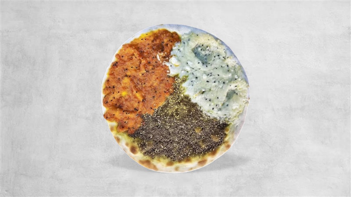 Zatar (dried thyme, sumac, toasted sesame seeds, chickpeas powder, lemon salt, and salt), and mixed vegetables.