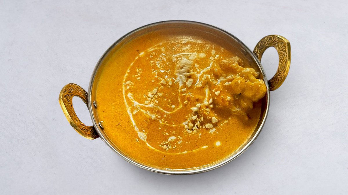 Mild. Marinerade, strimlade filébitar av tandoorikyckling, tillredda i tomatsås med indiskt smör och cashewnötter.