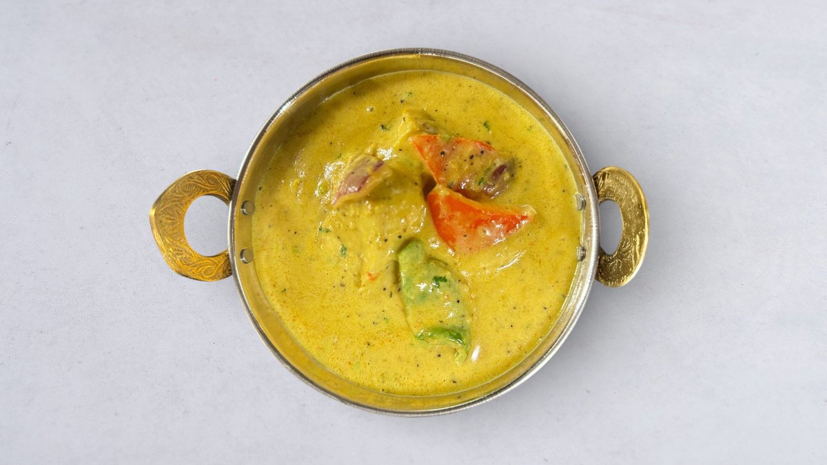 Medelstark. Calcutta inspirerad lammgryta med passerad mango, gula senapsfrön och kokosmjölk.