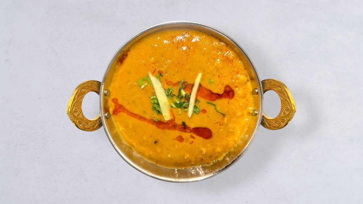Medelstark. Serveras med vegetarisk tallrik med linser, tillagad färskost, grönsaksrätt, raita och naan.