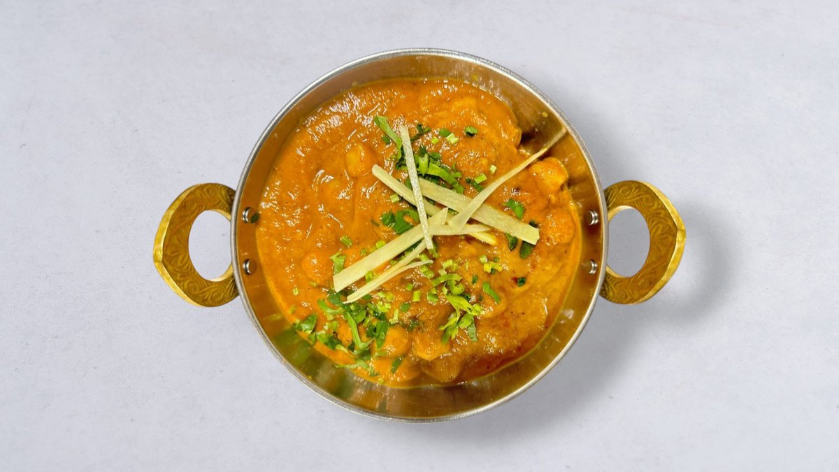 Medelstark. Kikärtor tillagade med tomater, vitlök, ingefära, grön chili och koriander i kryddstark sås.