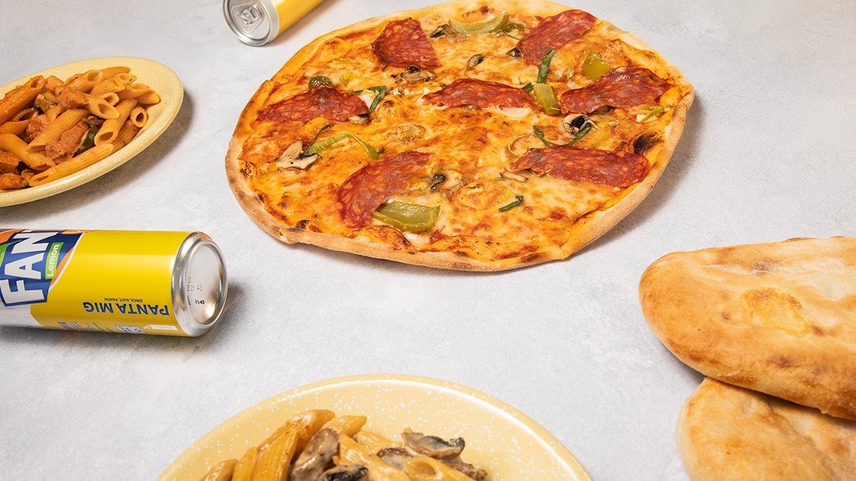 Salami, pepperonikorv, lök, paprika, ruccola och vitlöksost.