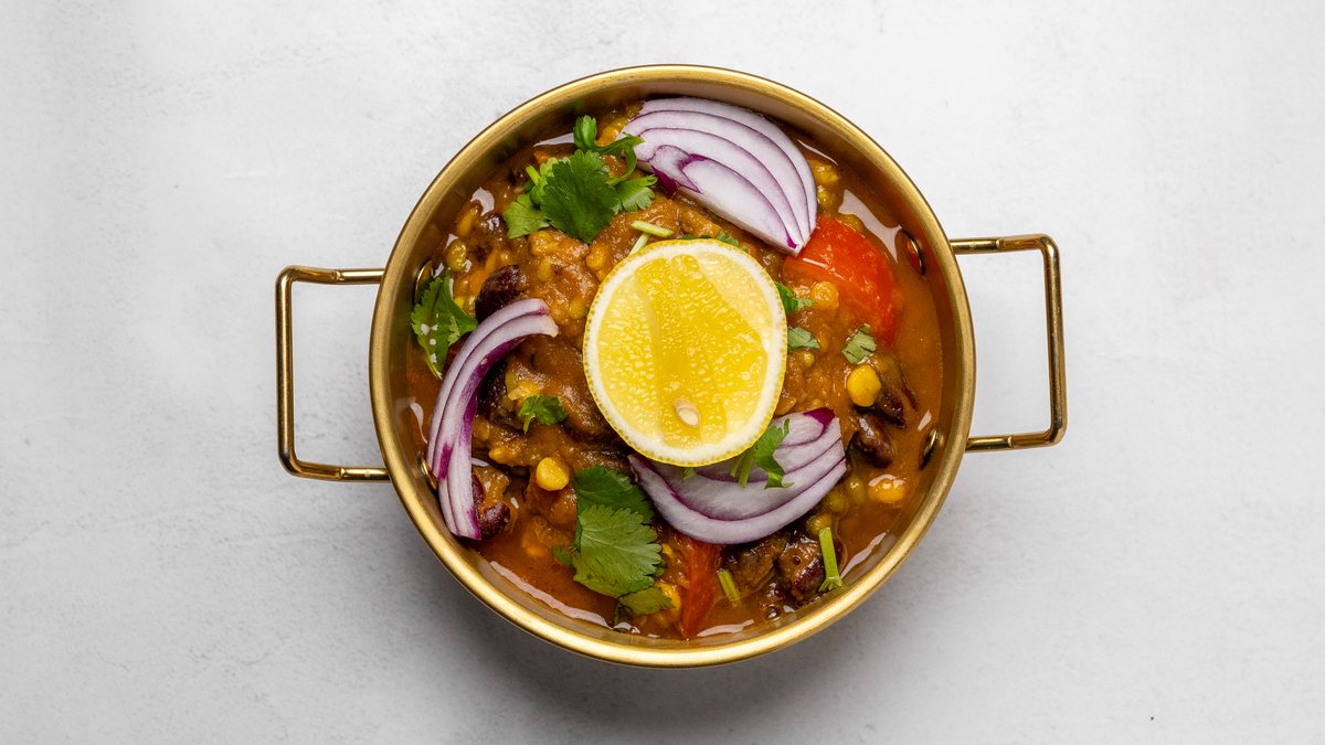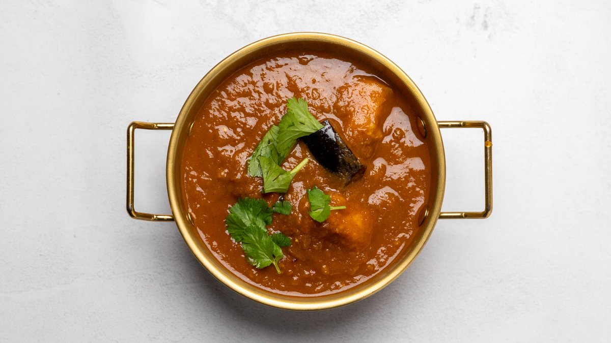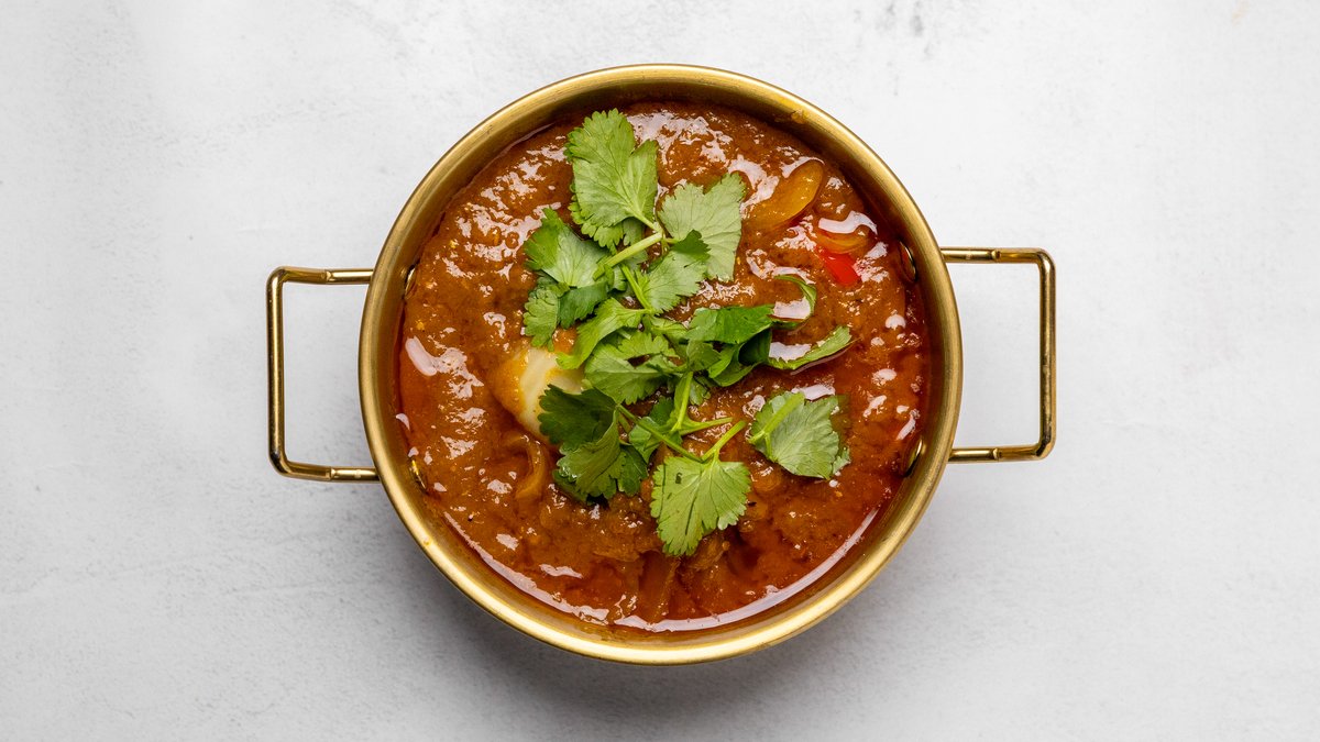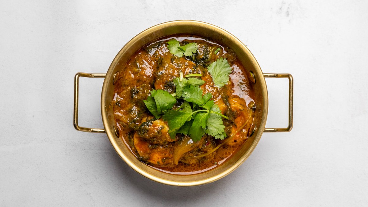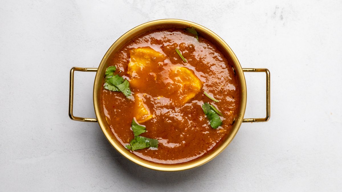 Stark gryta med nordindisk kryddblandning, citron, koriander och ingefära i en krämig tomatsås.