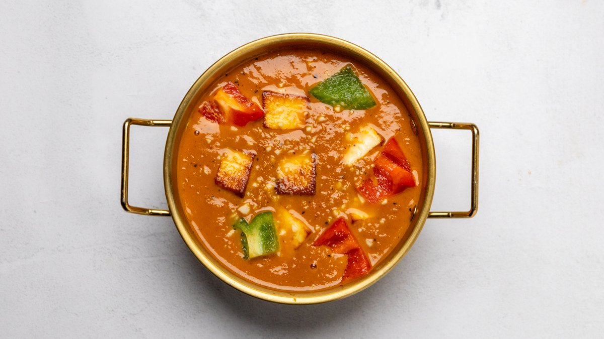 Grillad indisk ost med grönsaker. Serveras med masala sås.