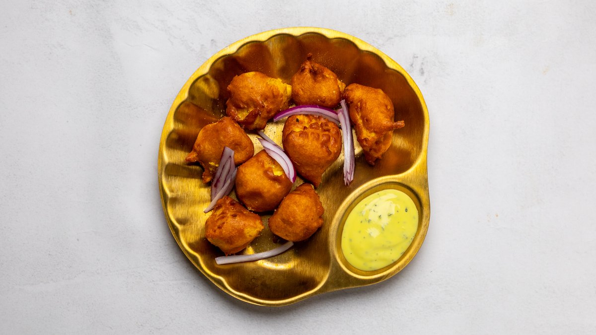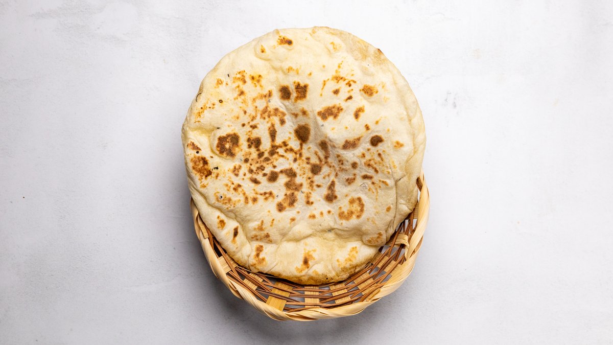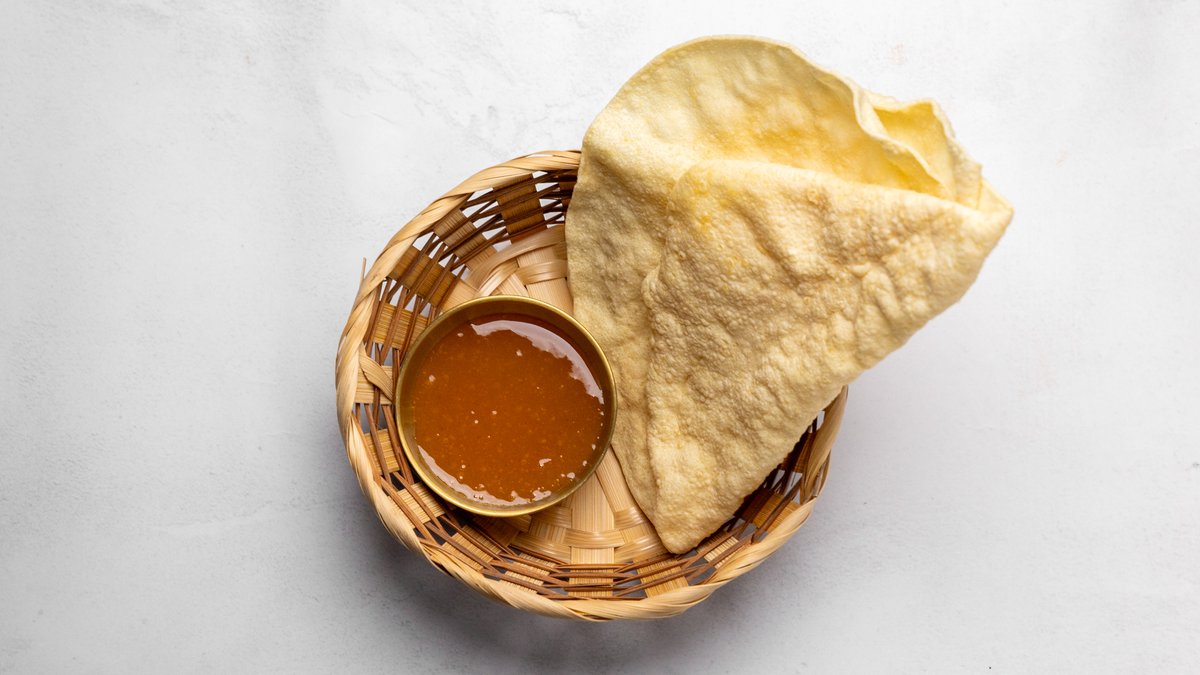 Krispigt linsmjöl bröd. Serveras med mango chutney.