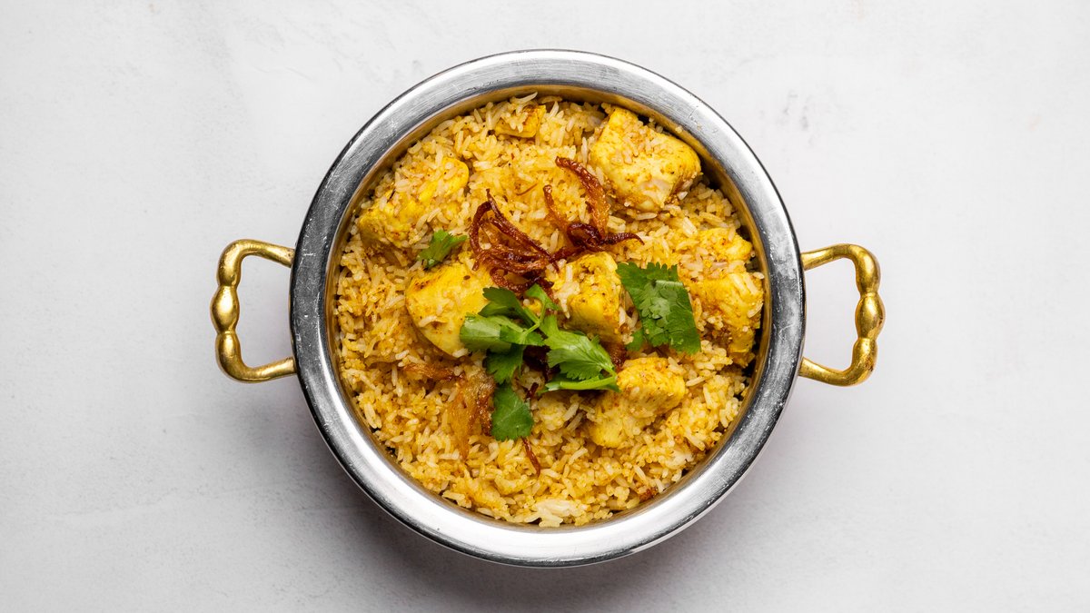 Mellanstark. En risrätt som tillagas med russin, lök, paprika, garam-masala kryddor, yoghurt och grädde. Serveras med polaowris och raita.