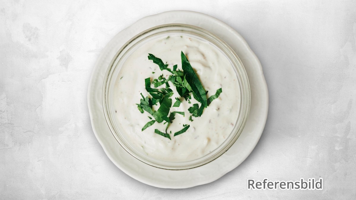 Friterad kyckling med grönsaker. Serveras med myntasås.