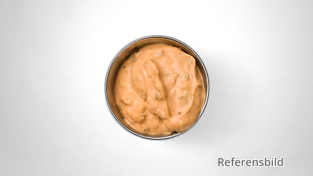 Inlagd gurka, rostad lök, cheddar, mayo, piri piri, grön chilli och BBQ-sås.
