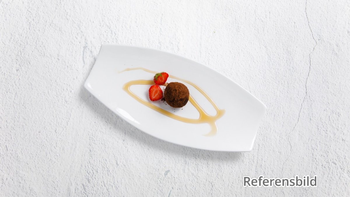 Punktera den och låt den härliga varma chokladen rinna ut. En fröjd för ögat och lukt- och smaksinnet! Serveras med vaniljglass och hallonkompott.