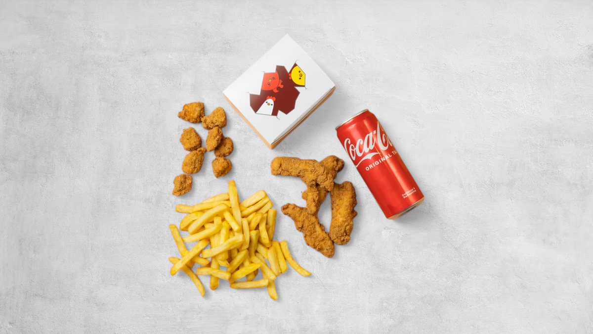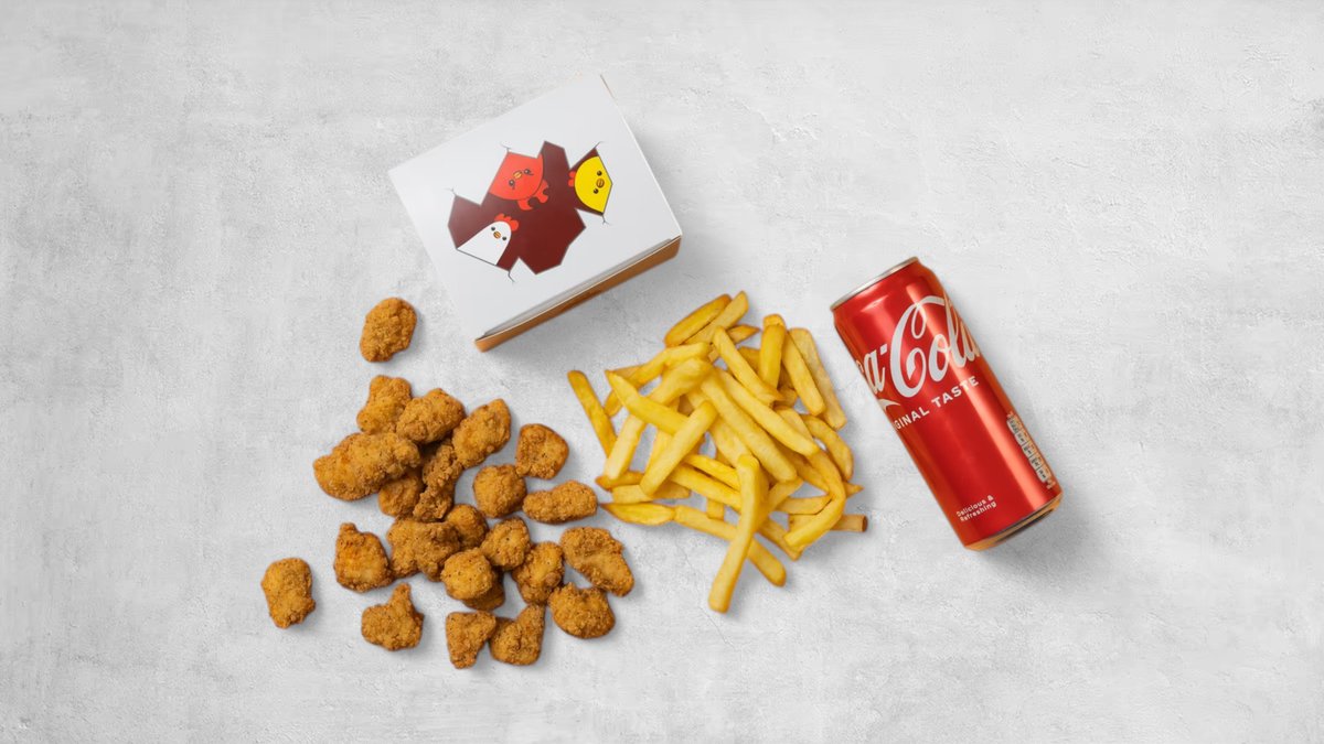 4 st tender bites, 8 st popcorn, 1 st valfri sidez, en sås och en läsk.