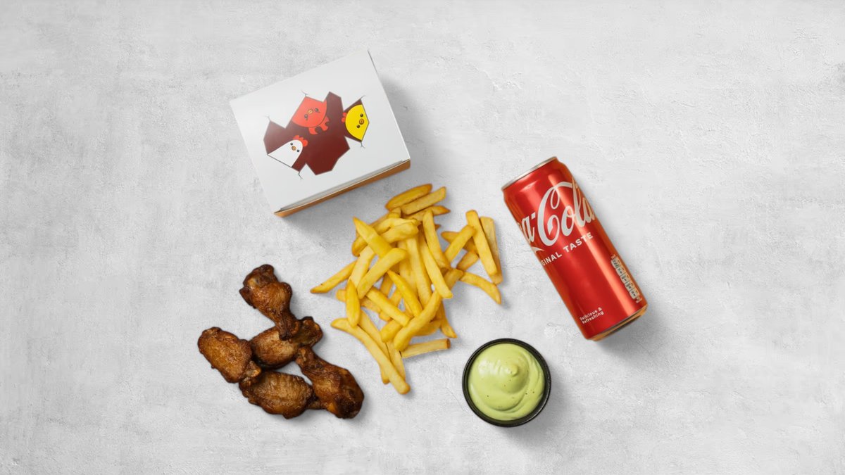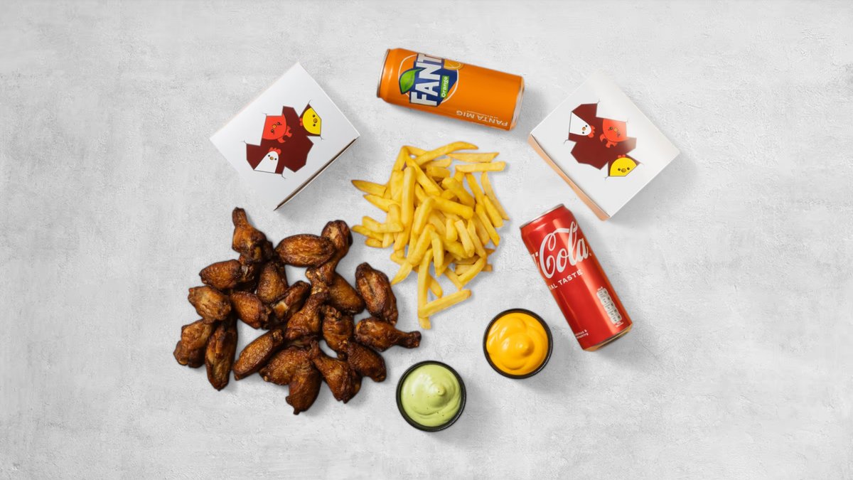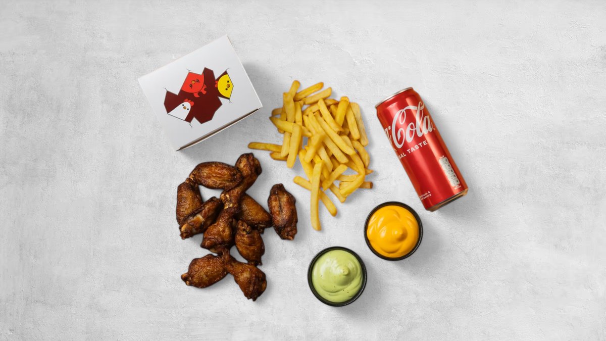 4 st Tender Bites, 6 st wings, 12 st popcorn, två valfria sidez, två såser och två läsk.