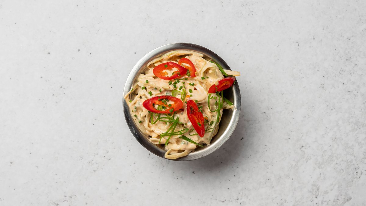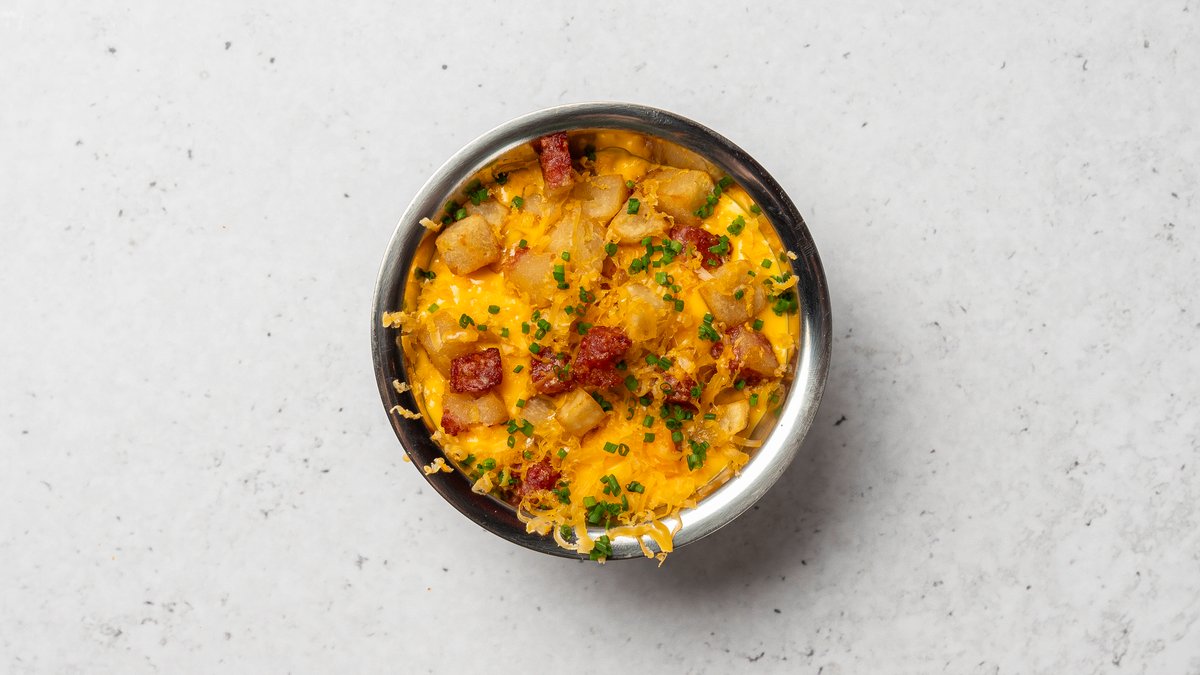 Nottbottnisk "Mac & Cheese". Stekt palt i ostsås toppad med krispigt norrländskt bacon.