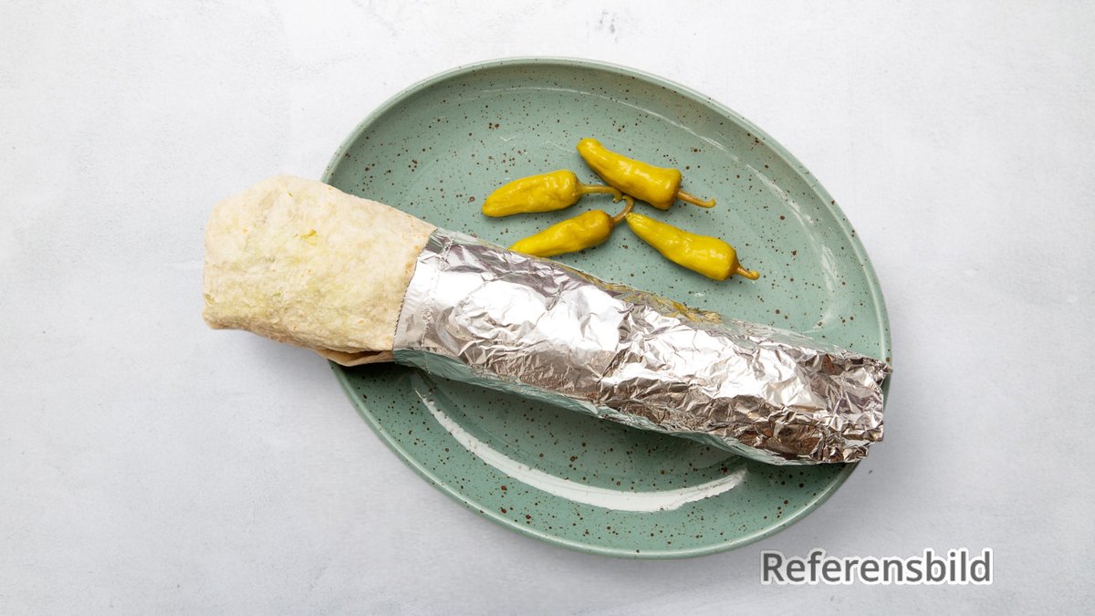 Rulle med vegansk kebab, nybakat bröd, isbergssallad, gurka, rödlök, tomat, fefferoni och valfri sås.